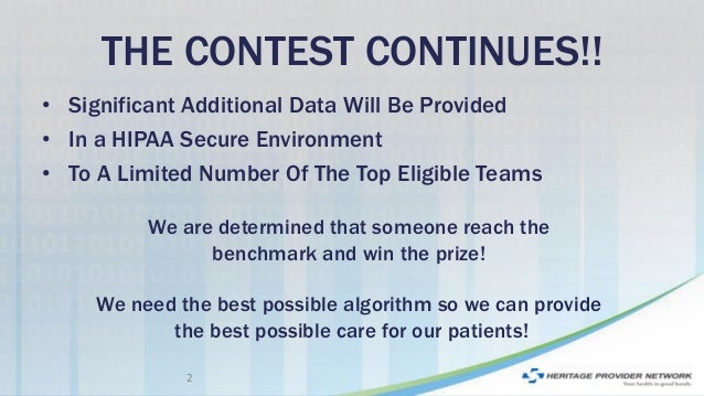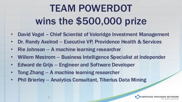 Meet the winning team that used patient data to develop a breakthrough predictive algorithm for use in preventing unnecessary hospitalizations.The Competition ran for two years and offered a $3 million Grand Prize, as well as six Milestone Prizes totaling $230,000.