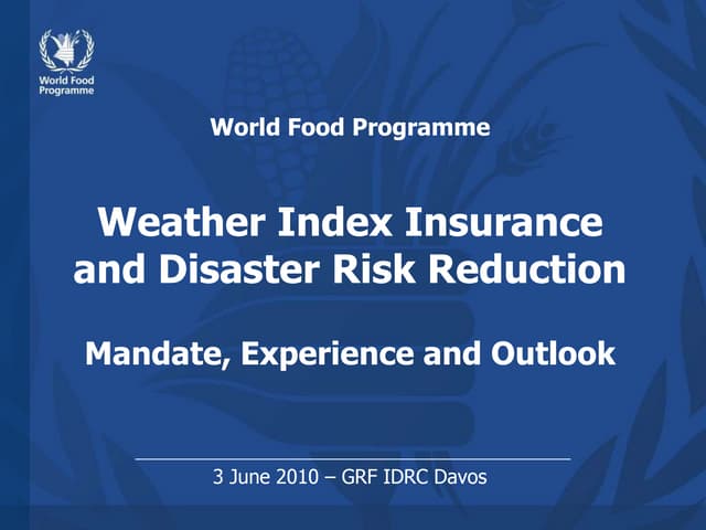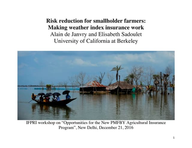 • Promote investments in information and ICT for agricultural risk management.