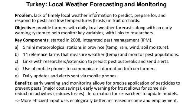 => improved local information on weather, and other variables could