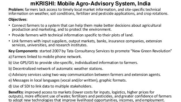 mKrishi website: http://www.tcs.com/resources/brochures/Pages/TCS_mKrishi-Mobile_Agro_Advisory_System.aspx