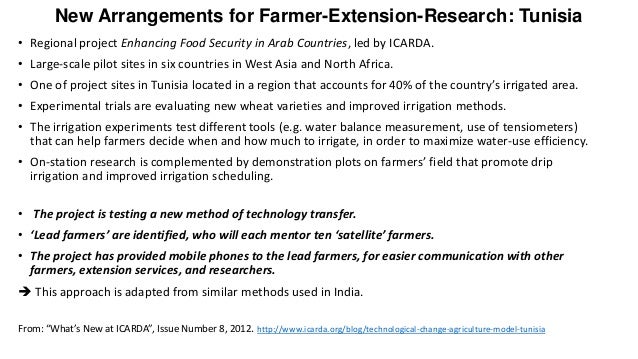 From: “What’s New at ICARDA”, Issue Number 8, 2012. http://www.icarda.org/blog/technological-change-agriculture-model-tunisia