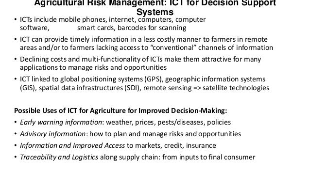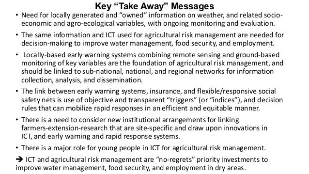 • The same information and ICT used for agricultural risk management are needed for