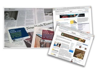 This document shows metrics for an organization since its 2009 launch, including steady annual increases in visitors, visits, and page views through 2013, as well as growing staff numbers and revenues exceeding expenses in all reported years. Total revenue grew from $3.8 million in 2009 to over $5 million in 2013 while expenses rose from $1.1 million to nearly $4.7 million over the same period.