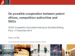 This presentation by Theon van Dijk from the European Patent Office (EPO) was made during a roundtable discussion on Competition, Intellectual Property and Standard Setting held at the 122nd meeting of the OECD Competition Committee on 17 December 2014. Find out more at http://www.oecd.org/daf/competition/competition-intellectual-property-standard-setting.htm