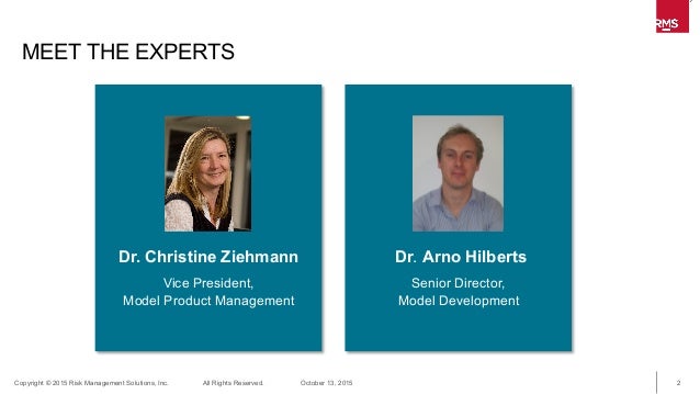 There is myself, Christine Ziehmann. I have a PhD in Meteorology and lead the RMS Model Product Management team and