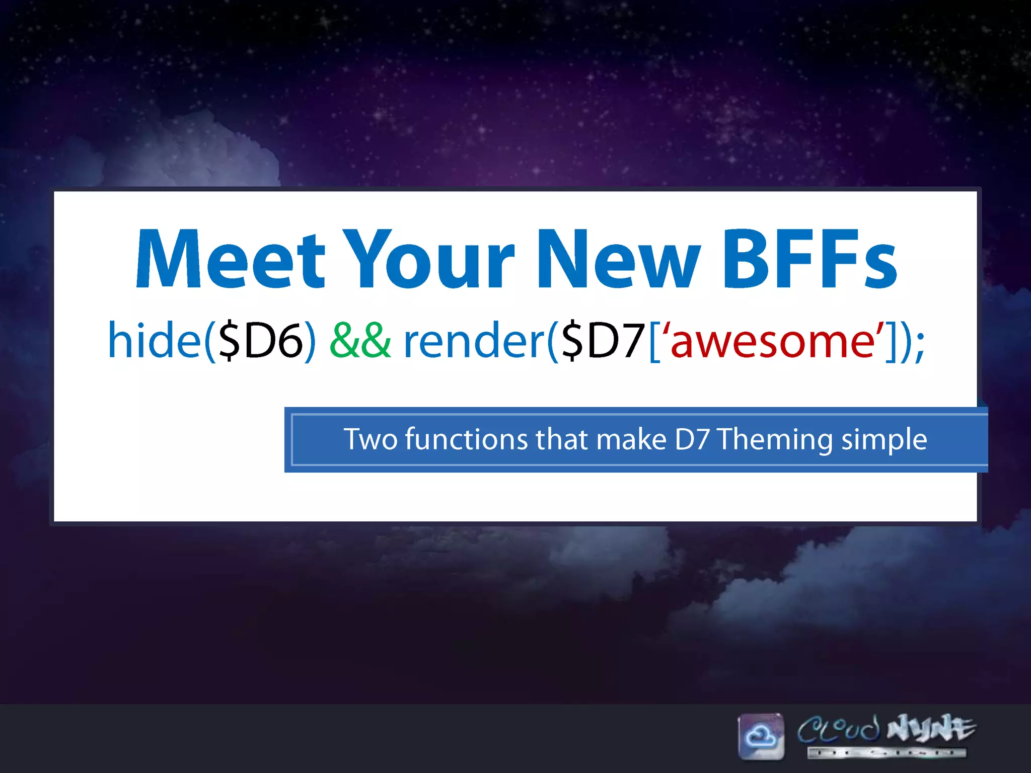 regions_hidden[] = FOO;](https://image.slidesharecdn.com/d7theming-130212134536-phpapp02/75/Theming-Drupal-7-Meet-your-new-best-friend-render-14-2048.jpg)