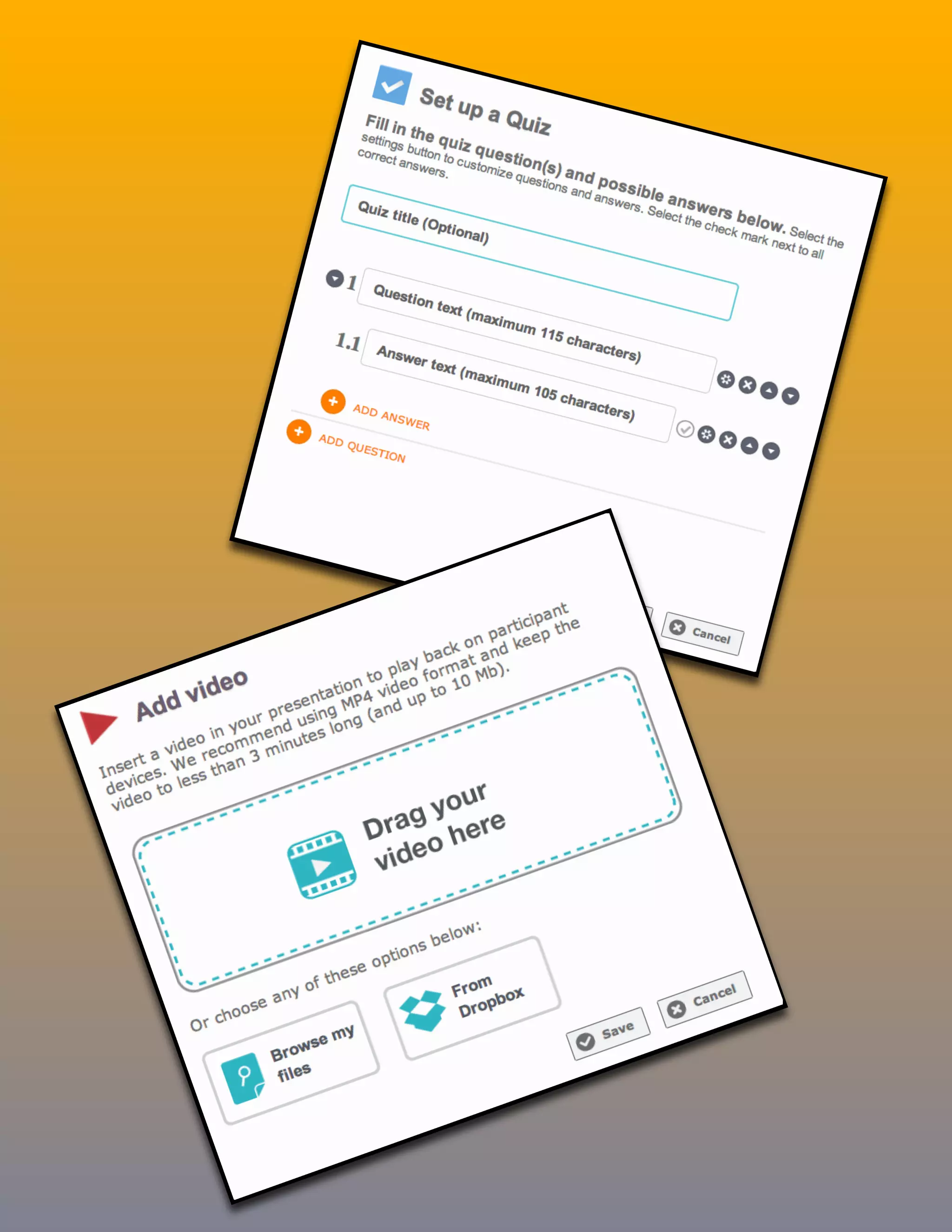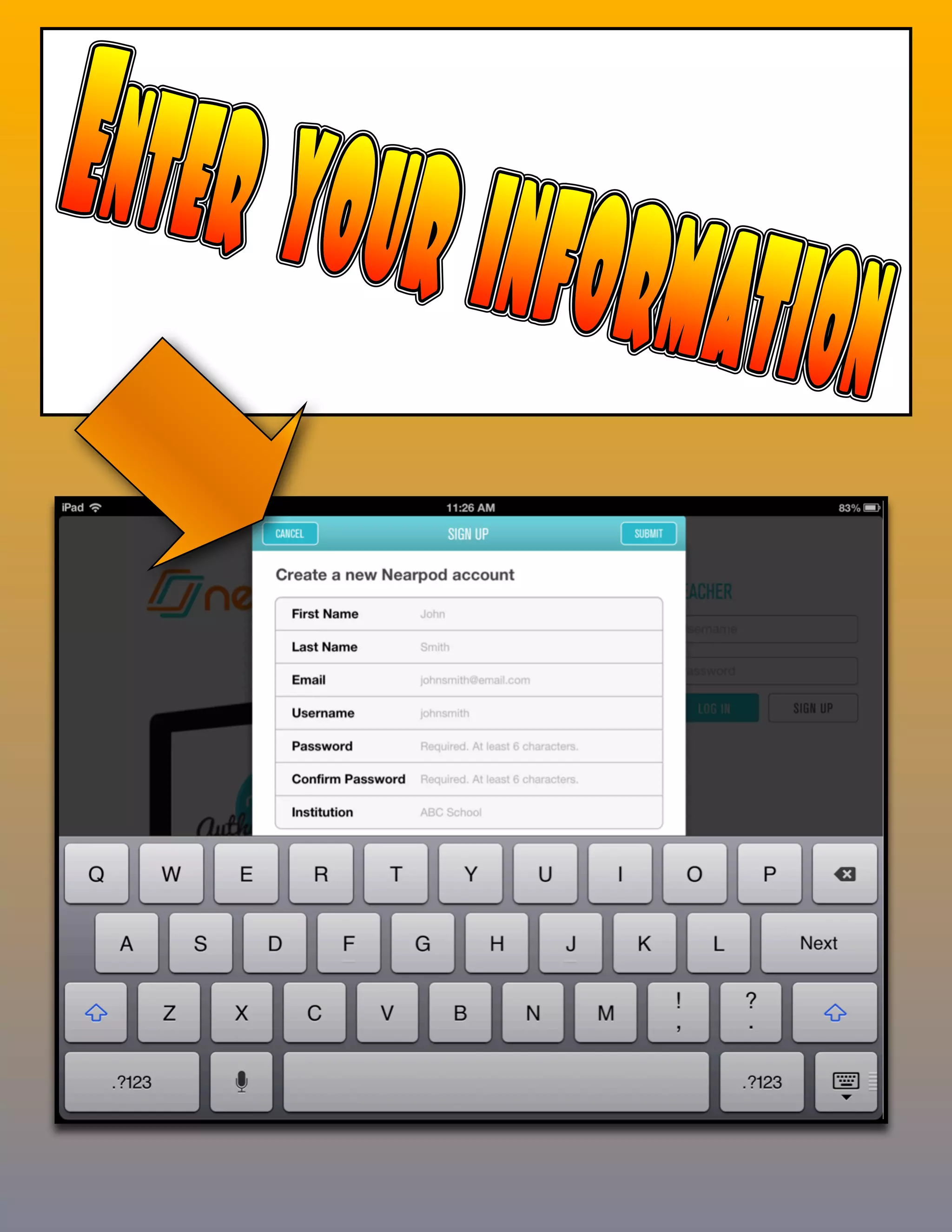 Nearpod is an app that allows users to create and share presentations. Users can sign up with an email and password, then click to begin. The app home screen displays options to start new presentations from scratch, upload existing presentations, search for existing presentations to use, and view all projects. Some features like slideshow and internet browsing are limited in the free version of the app.