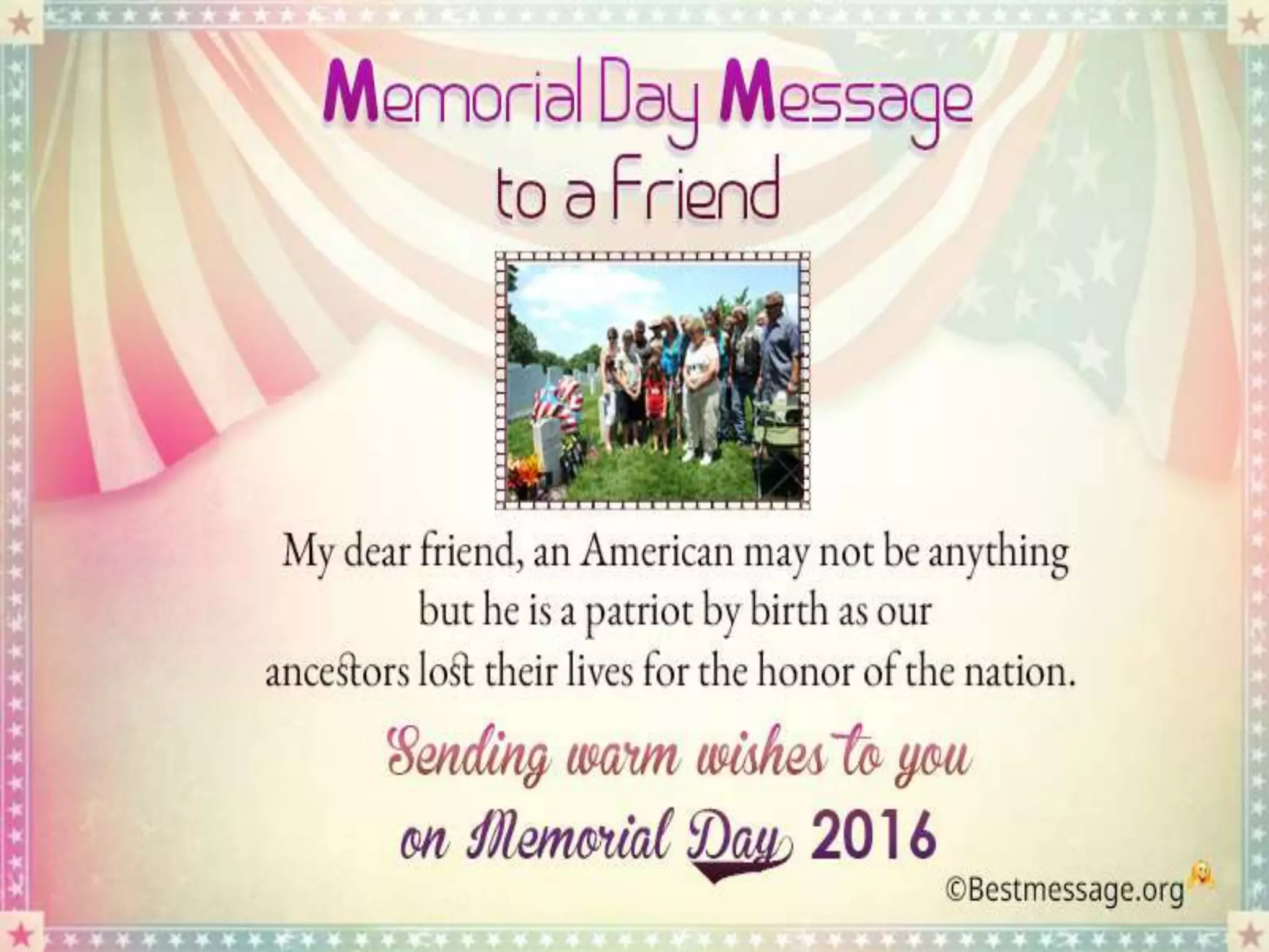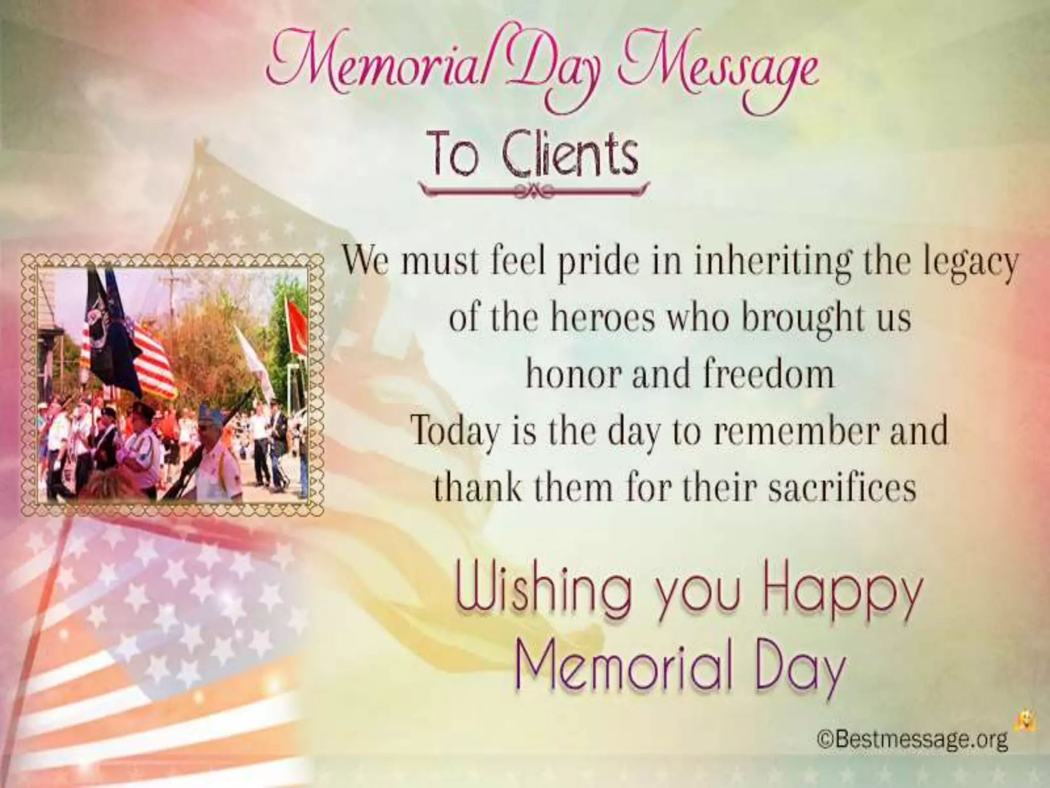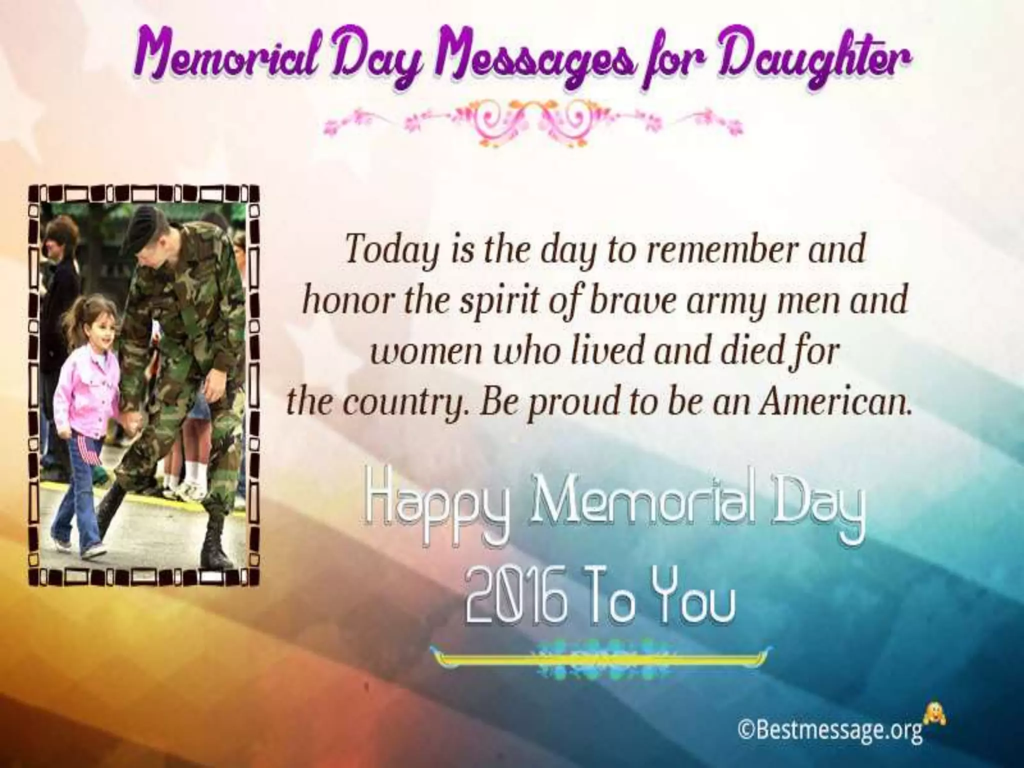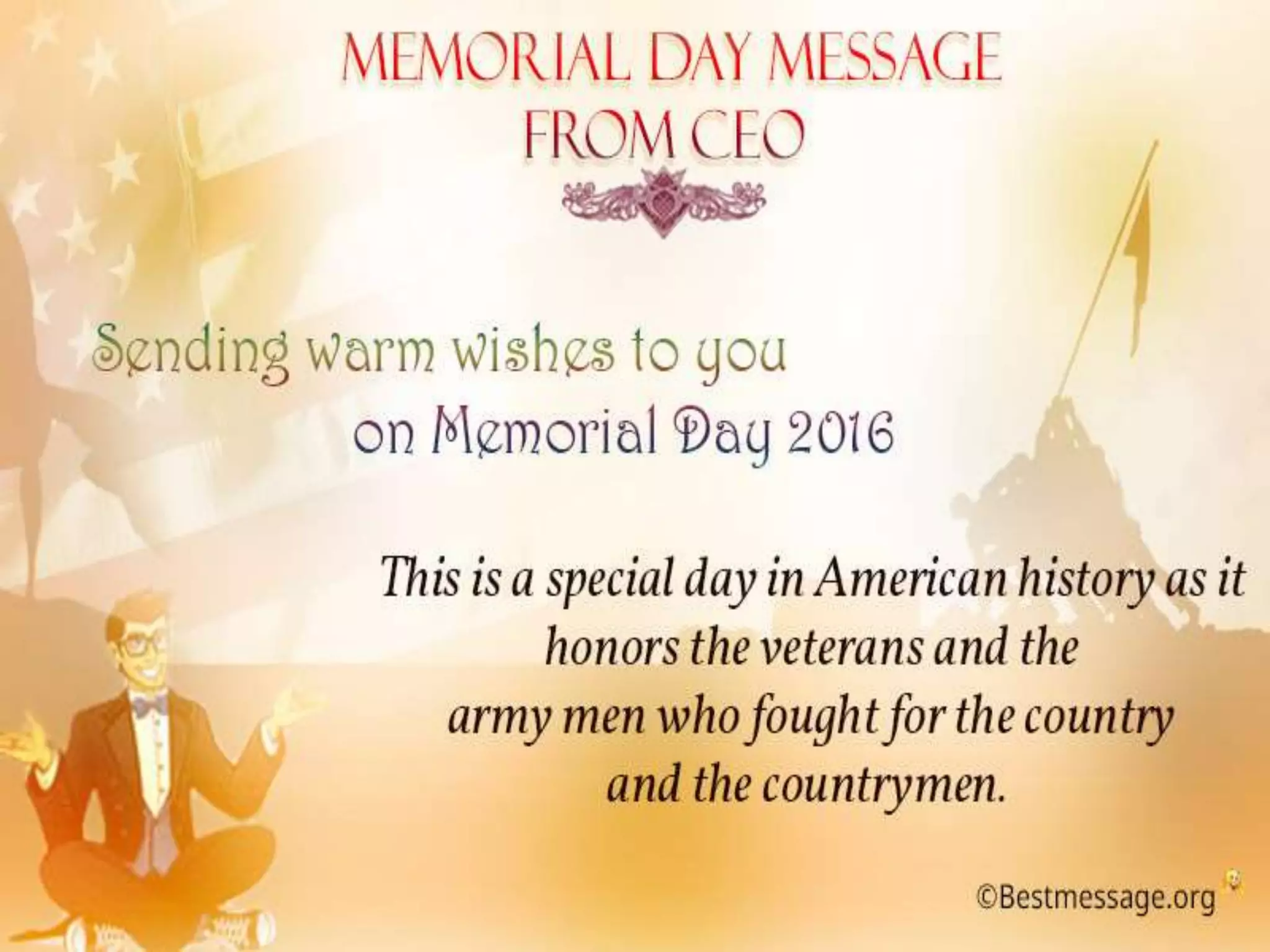 Best collection of Happy Memorial Day 2016 wishes, text messages and sayings to send your friends, veterans or employees on facebook & whatsapp. Here are some of the thoughtful memorial day weekend quotes & greetings on this 30 May 2016.