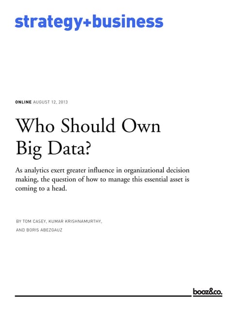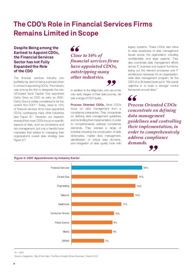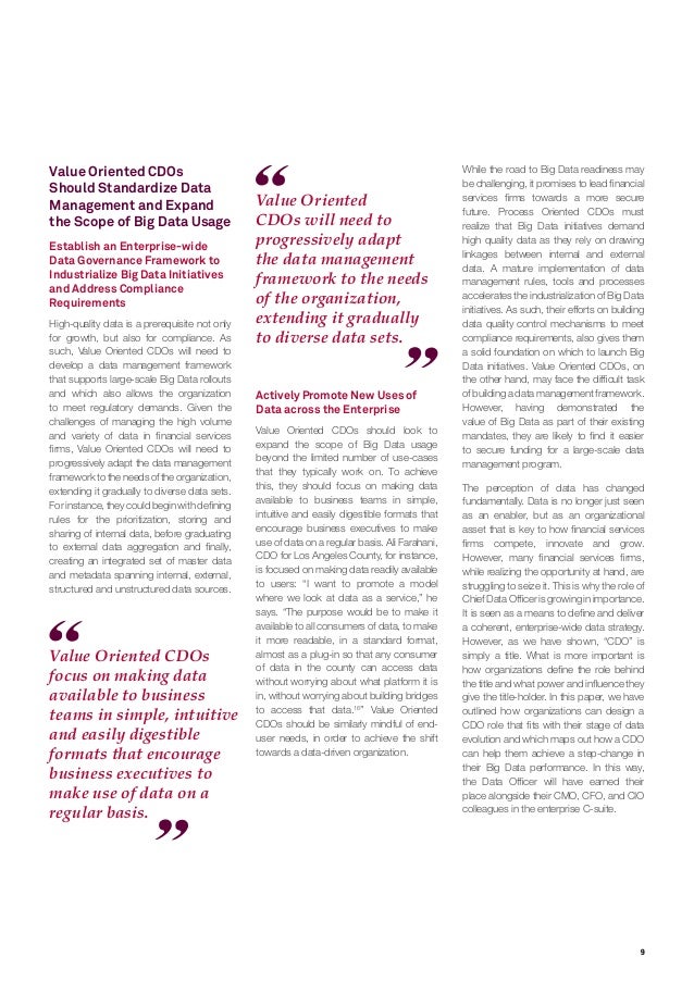 decide whether to elevate a new functional role to “chief” based on the strategic importance of the issue for the organization and its sector. For example, in many organizations, marketing will be so essential to performance that few would deny the need for a CMO. In financial services, data has become so mission-critical that the role of Chief Data Officer is simply essential.