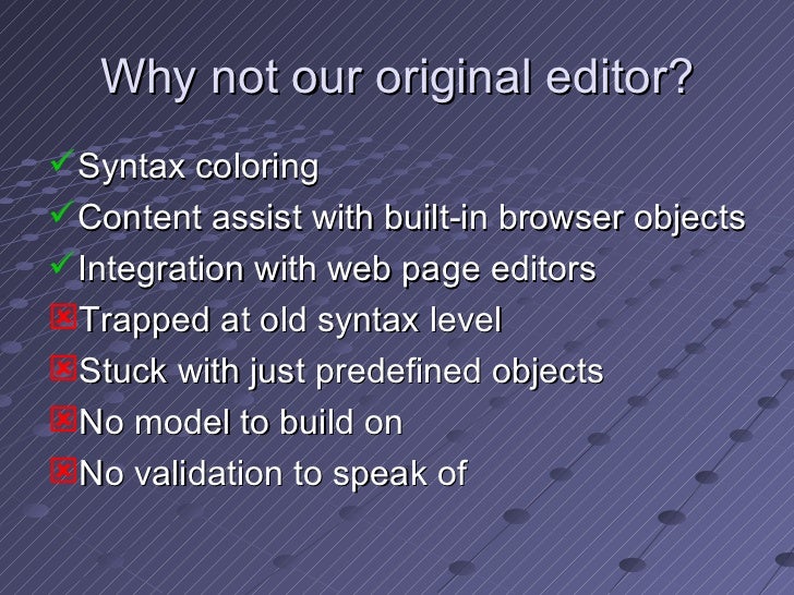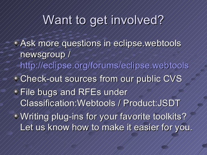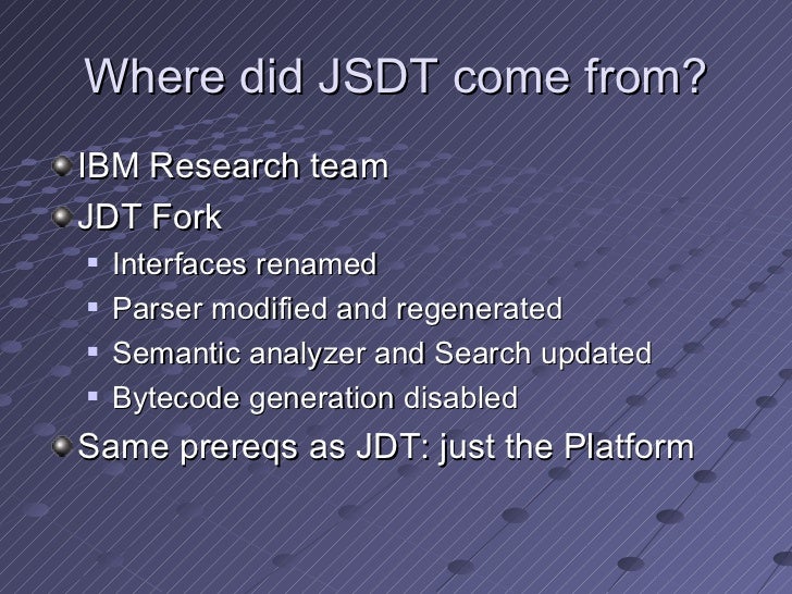 JSDT is the JavaScript IDE now provided within the Web Tools Platform, a vendor neutral, standards oriented basis for web tools in Eclipse. Being vendor neutral, however, means not playing favorites …