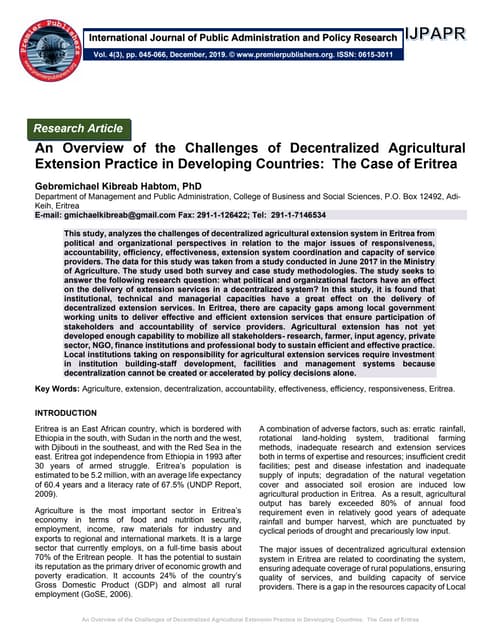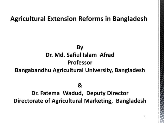 Presentation Lay out <ul><li>The National Setting-Background </li></ul><ul><li>National Policy Environment for Agriculture & Rural Development </li></ul><ul><li>National Policy Environment for Extension and Advisory Services </li></ul><ul><li>Status of Extension Services </li></ul><ul><li>Funding </li></ul><ul><li>Impact </li></ul><ul><li>Recommendations </li></ul>