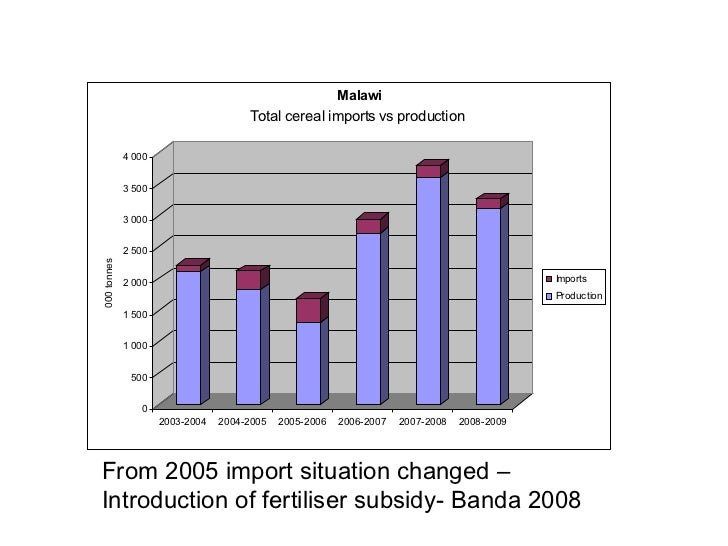 From 2005 import situation changed – Introduction of fertiliser subsidy- Banda 2008