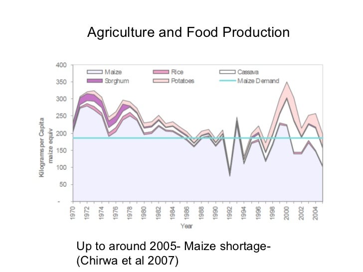 Agriculture and Food Production Up to around 2005- Maize shortage- (Chirwa et al 2007)