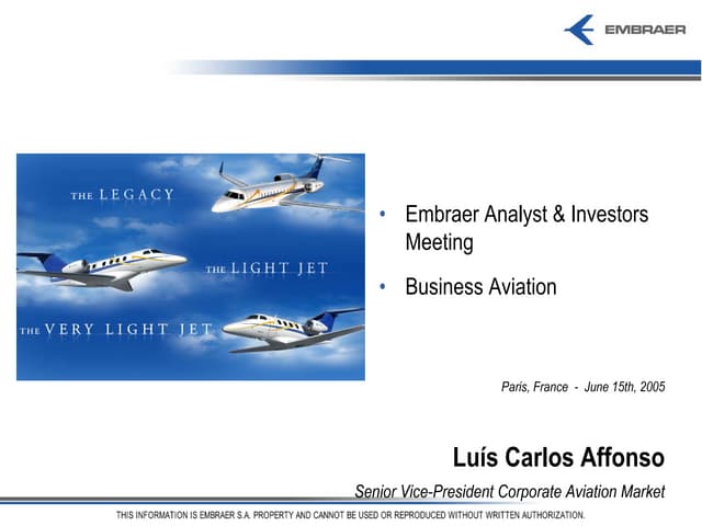 2005* Embraer Day Business Jet Market Presentation (DisponíVel Apenas Em InglêS)