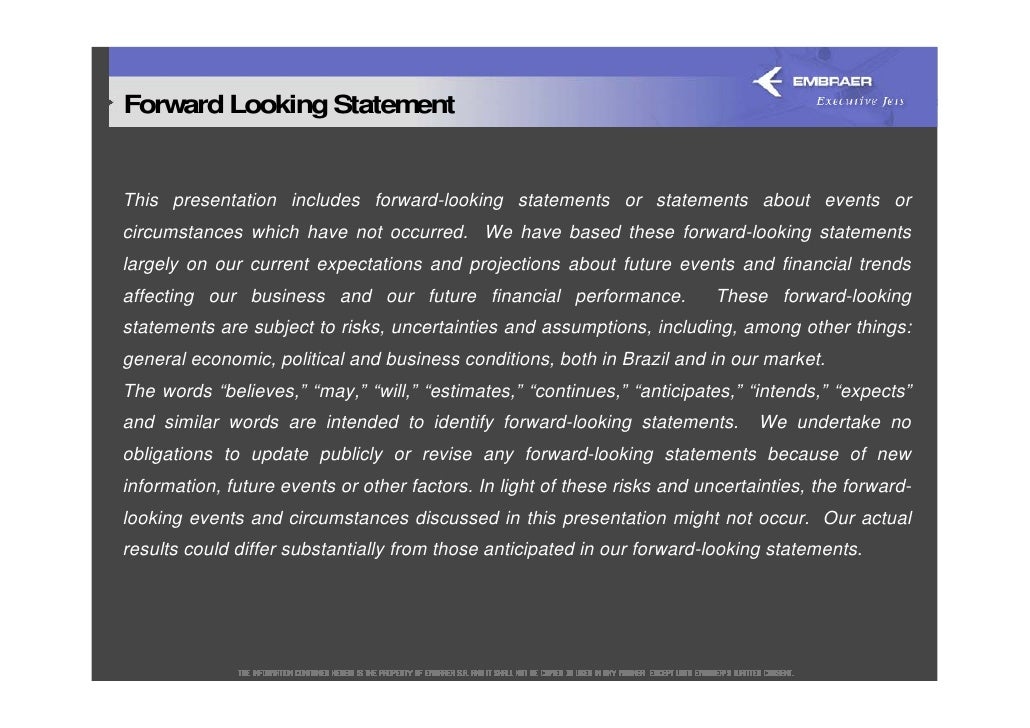 looking events and circumstances discussed in this presentation might not occur. Our actual