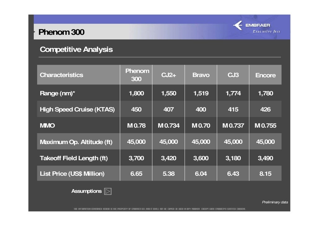 Phenom 300* vs. CJ2+ / CJ3 / Encore (Mid-light) Phenom 300* vs. Bravo