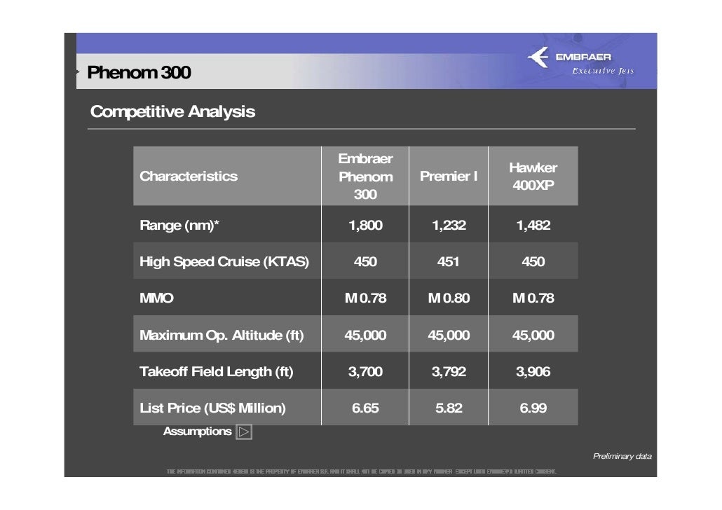 Phenom 300* vs. Premier I Phenom 300* vs. Hawker 400XP