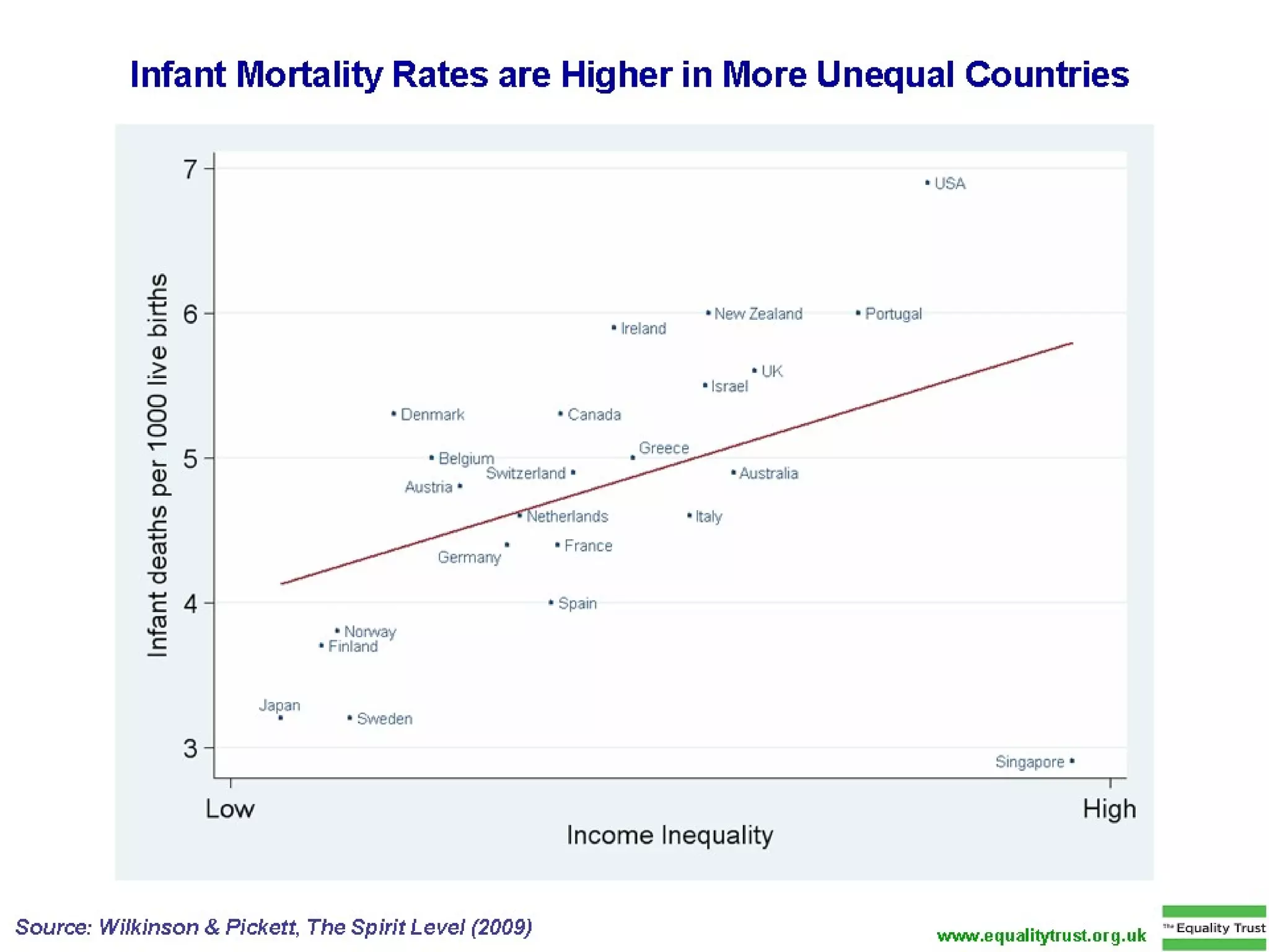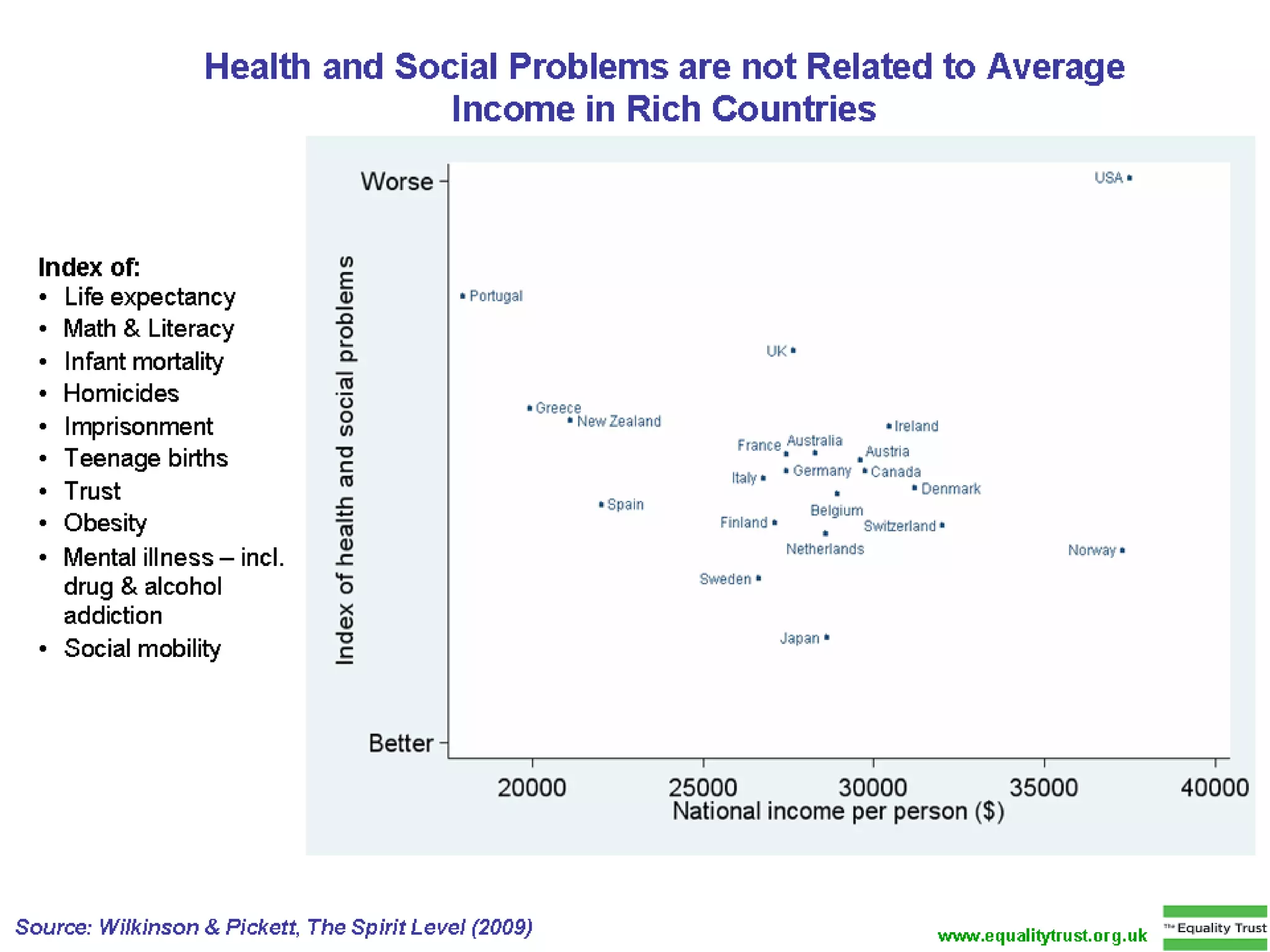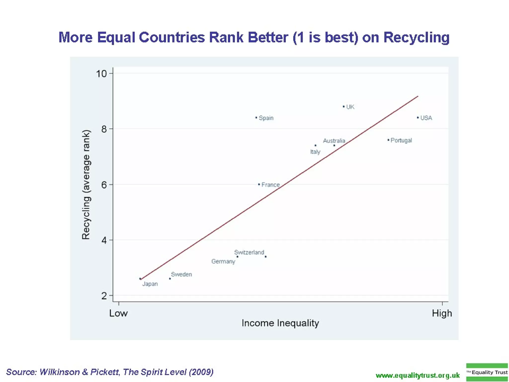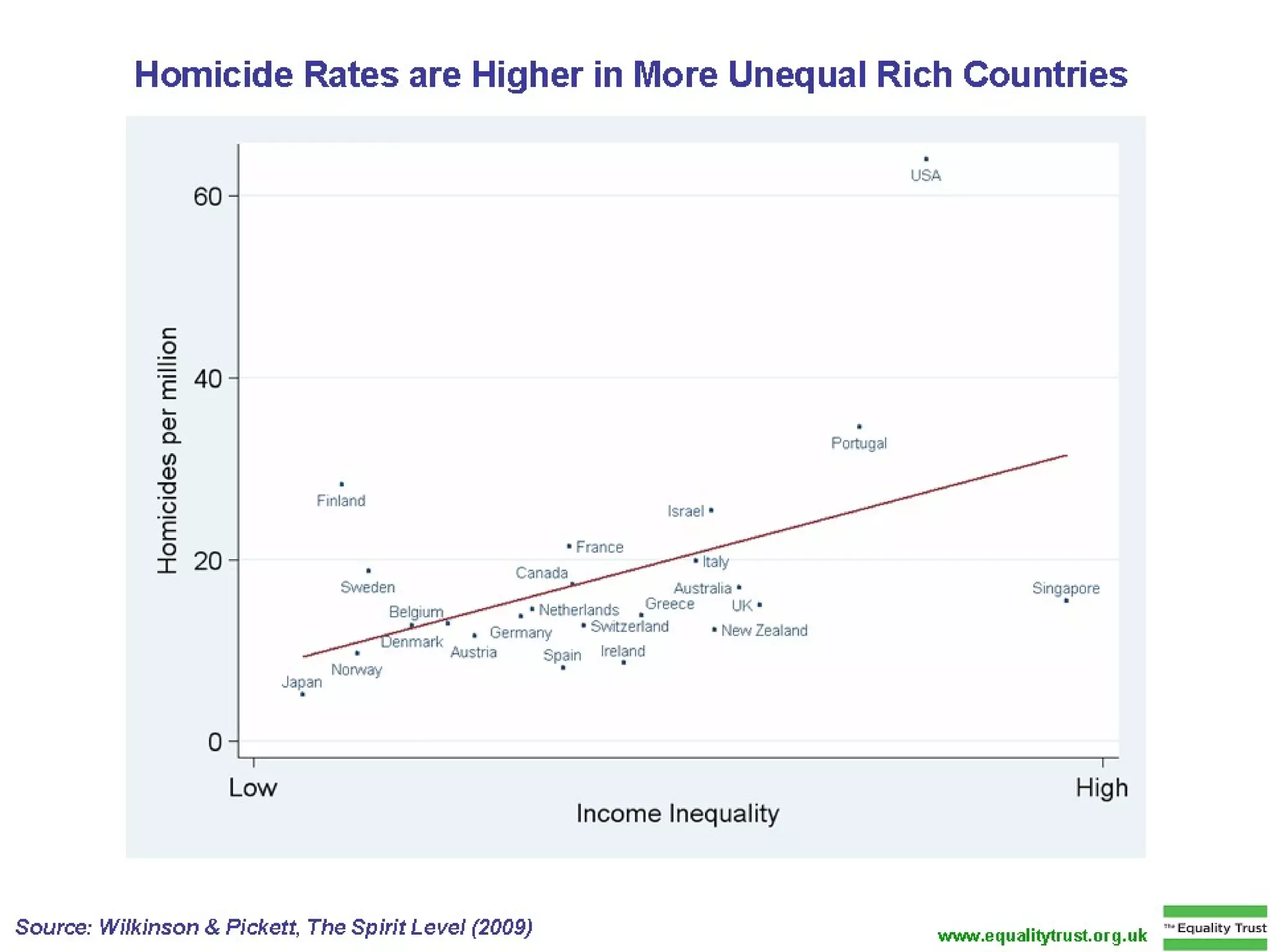 This PowerPoint file contains 36 of the more important graphs published in The Spirit Level: Why More Equal Societies Almost Always Do Better by Richard Wilkinson and Kate Pickett. We hope you will use them in talks, lectures or discussion groups to help increase people's understanding of the effects of inequality. The slides can be downloaded and are provided on condition you acknowledge their source. We strongly recommend that you use them in conjunction with the book which explains the relationships shown in the graphs. Find out more from www.equalitytrust.org.uk