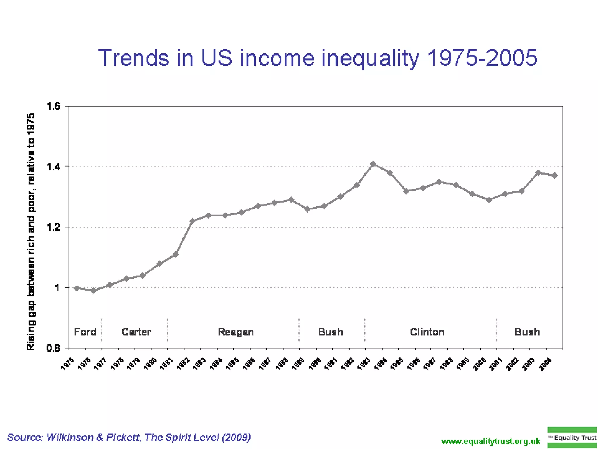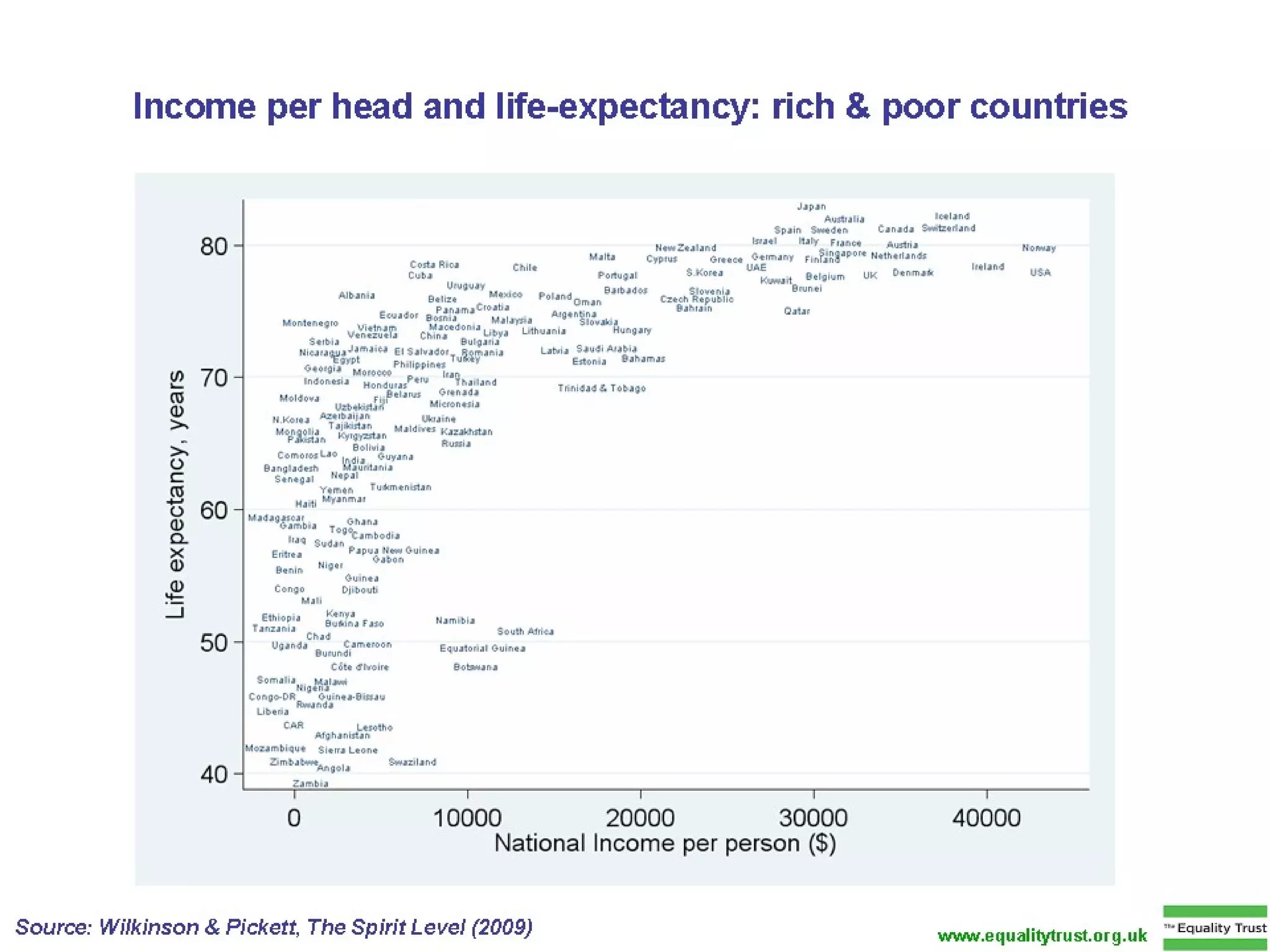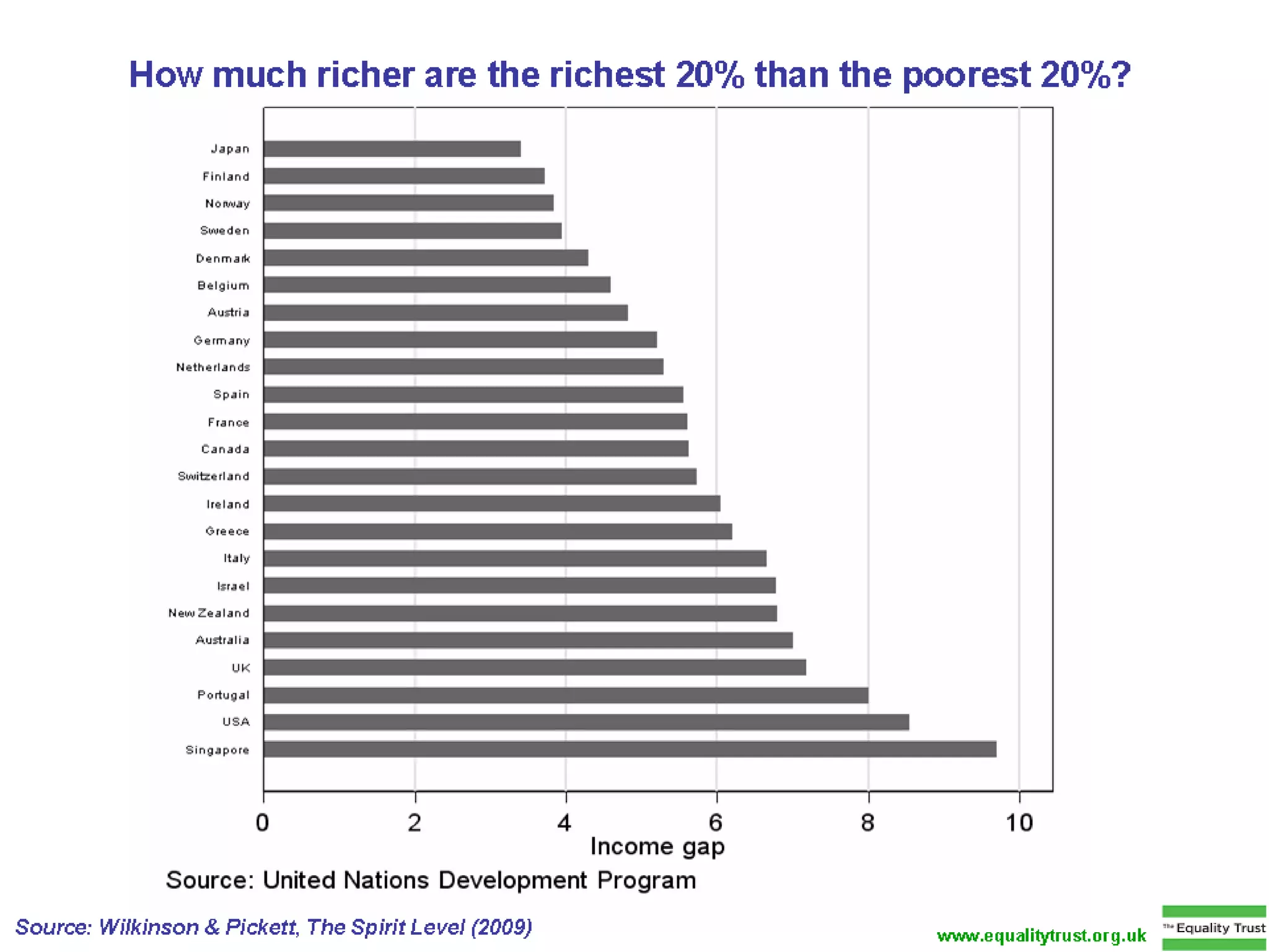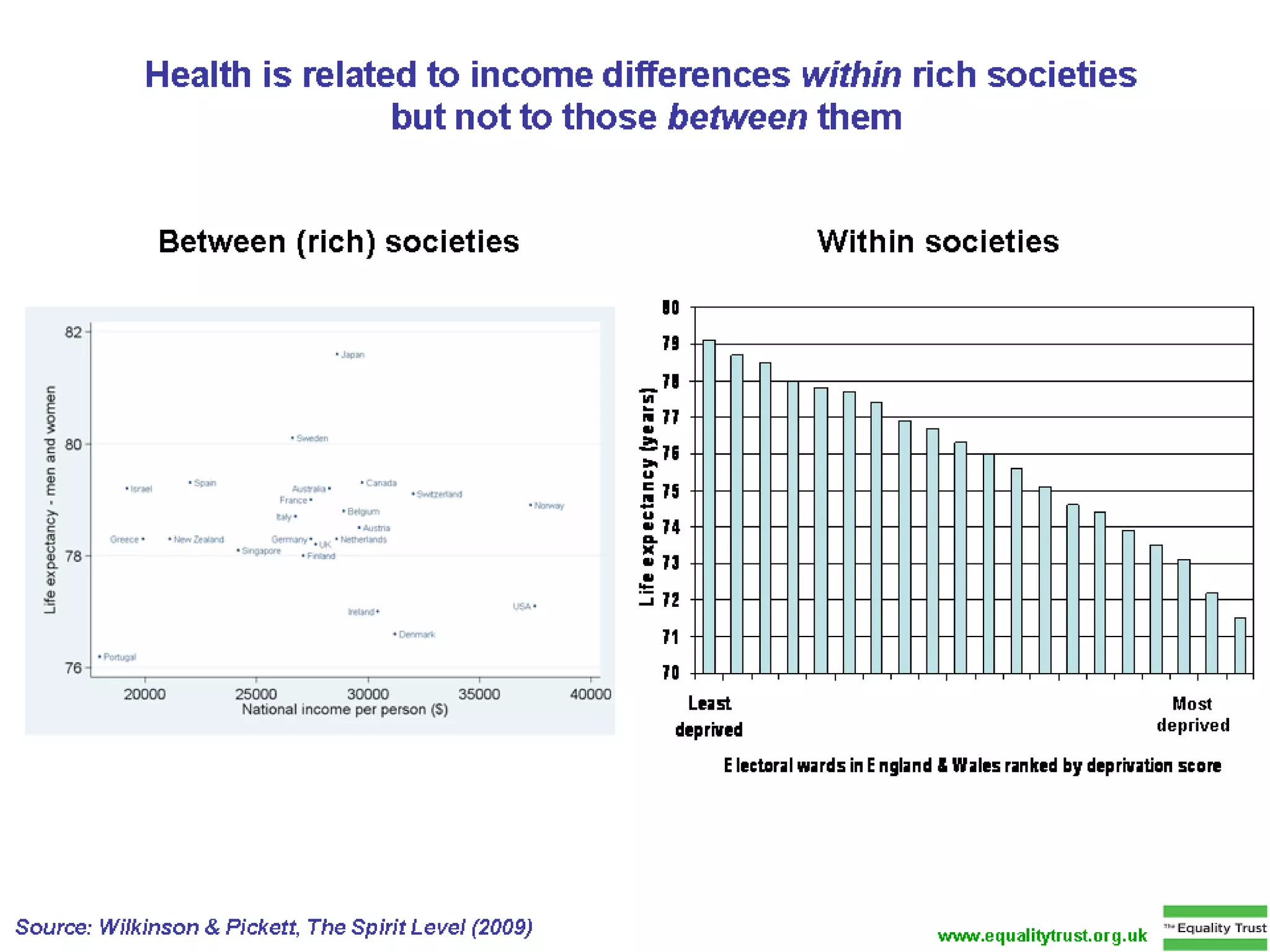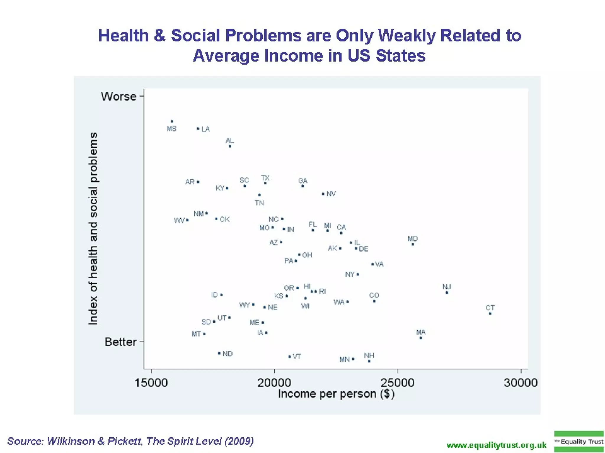 This PowerPoint file contains 36 of the more important graphs published in The Spirit Level: Why More Equal Societies Almost Always Do Better by Richard Wilkinson and Kate Pickett. We hope you will use them in talks, lectures or discussion groups to help increase people's understanding of the effects of inequality. The slides can be downloaded and are provided on condition you acknowledge their source. We strongly recommend that you use them in conjunction with the book which explains the relationships shown in the graphs. Find out more from www.equalitytrust.org.uk