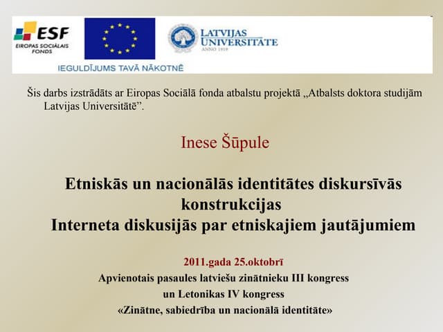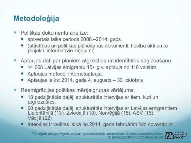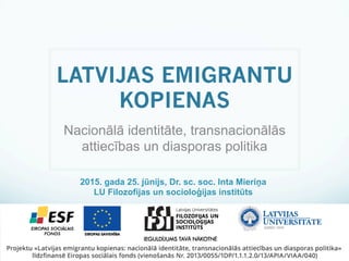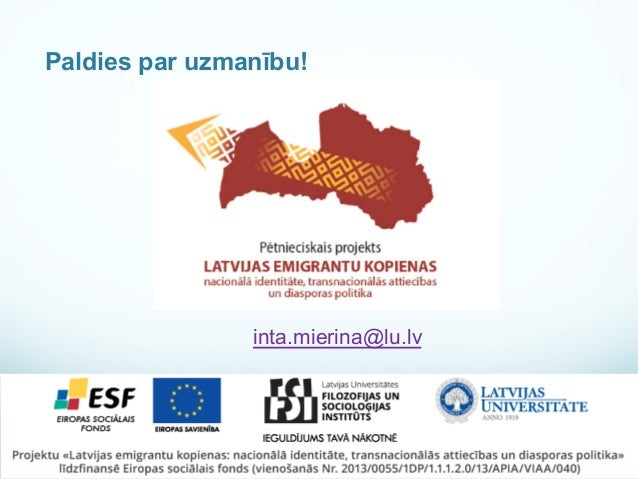 ESF projekts «Latvijas emigrantu kopienas: nacionālā identitāte, transnacionālās attiecības un diasporas politika»