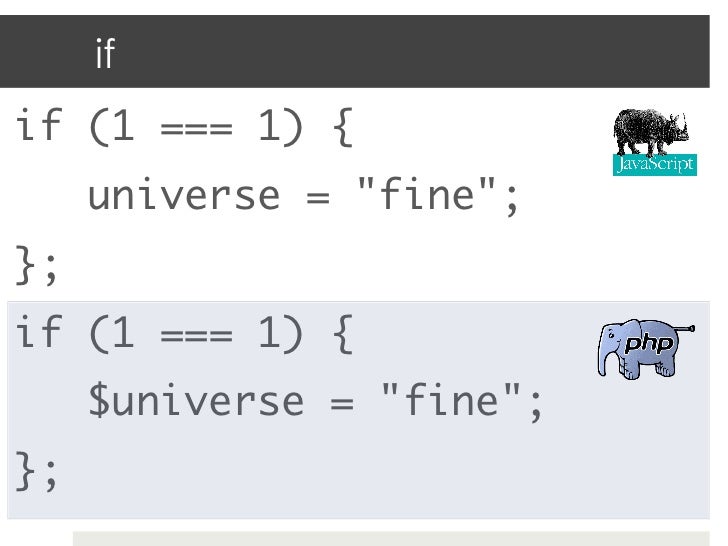 There are trailing semi-colons after the if(){} statements on slide 14. They end up being empty statements - but I figured you might wanna know. But maybe you know something I don't, haha? :P