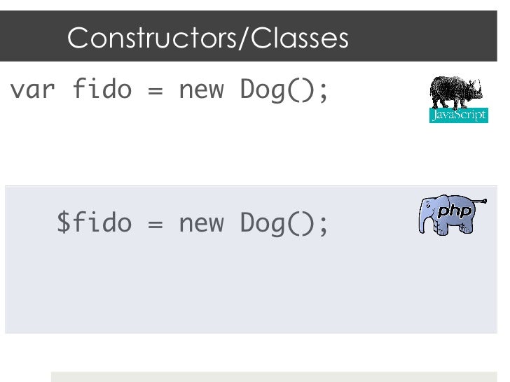 Constructors/Classesvar fido = new Dog(); $fido = new Dog();