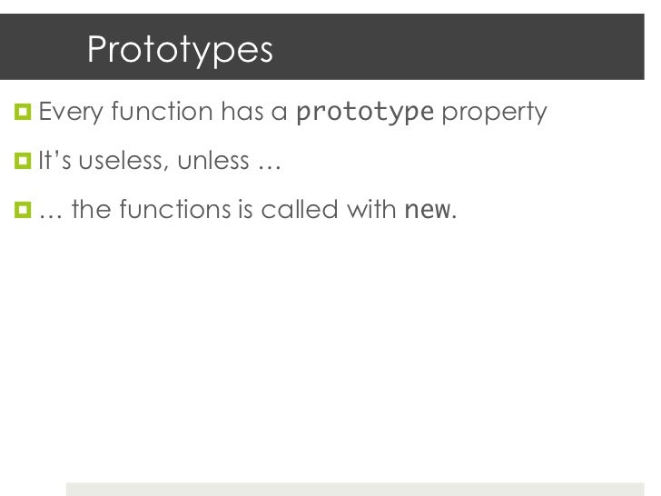 Prototypes¤ Every function has a prototype property¤ It’s useless, unless …¤ … the functions is called with new.