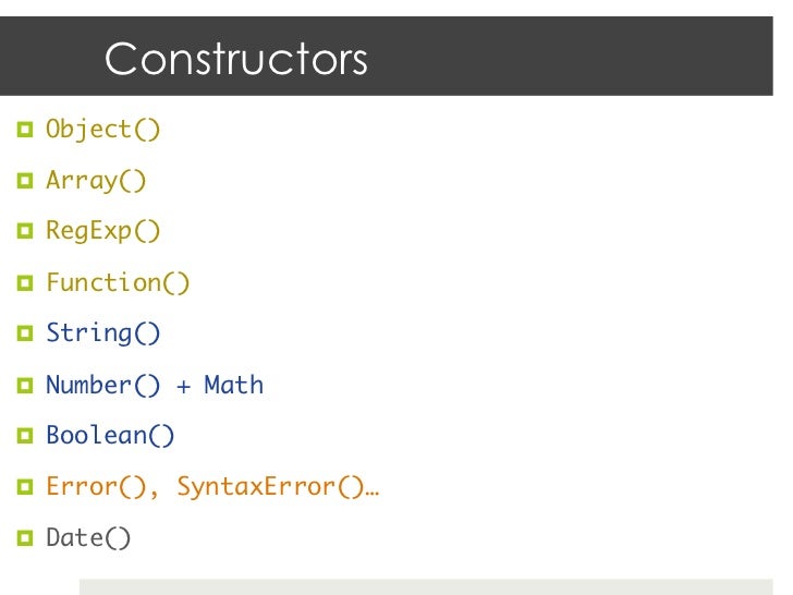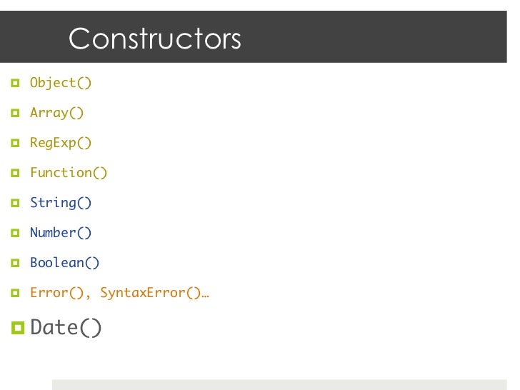 We don’t need no constructors¤ boolean // yep var b = true; // nope, why would you ever var b = new Boolean(true);