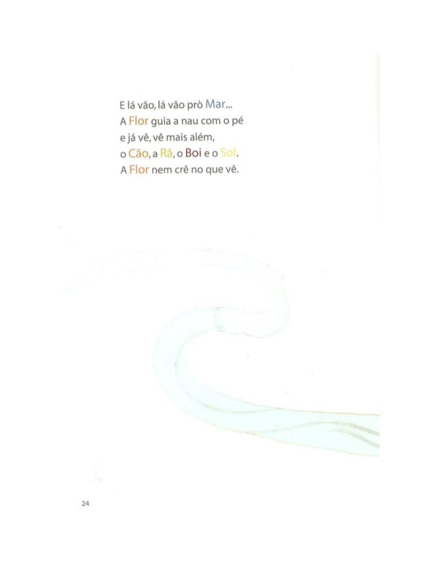 24. 24. Mas a Rã e o Cão vão bem. Cá à ré, já com fé, a Flor quer dar o pé ao Boi, mas a nau vai num ar pró Mar. À toa, sob os três, o Pau sua. Só o Boi, tão bom, não vai ver o Mar! ...