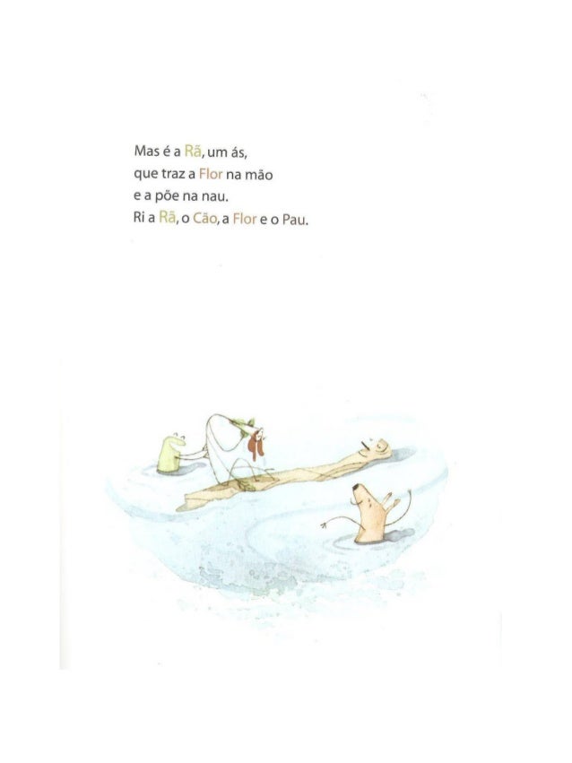 13. 13. A Flor voa ' e cai de pé no Pau. E o Pau cai ao rio e vai, vai, vai. .. E a Fior ri, ri, bri. O 20 N_ . . _, __ _ _. _, ~~»~--~- A~- «_