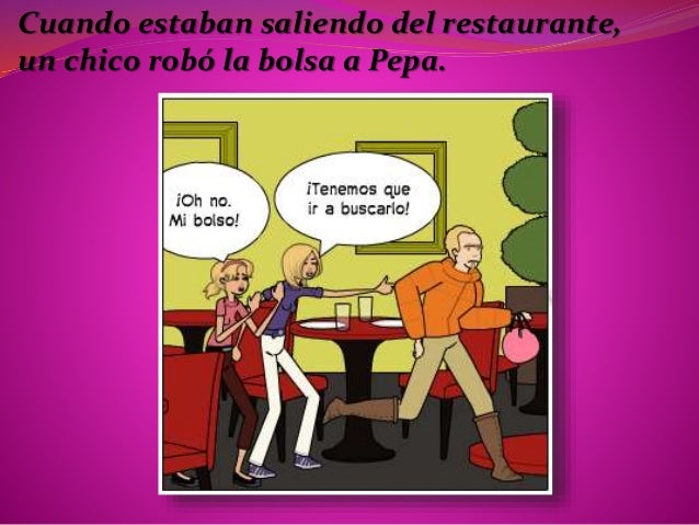4. 4. Cuando estaban saliendo del restaurante, un chico robó la bolsa a Pepa.