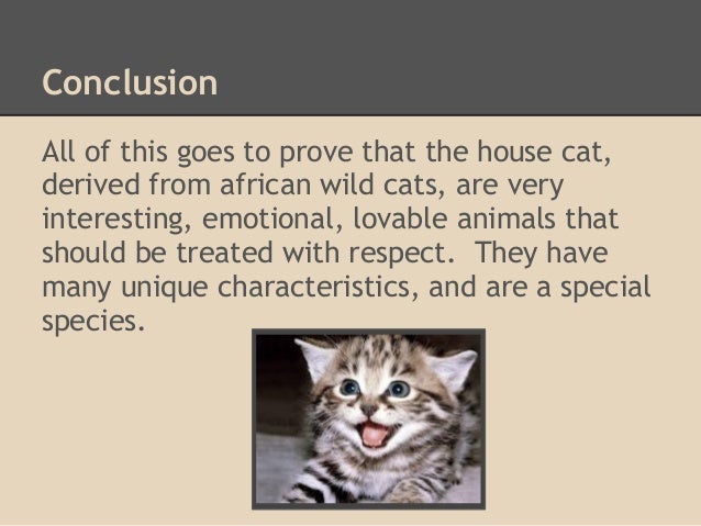 9. 9. ConclusionAll of this goes to prove that the house cat,derived from african wild cats, are veryinteresting, emotional, lovable animals thatshould be treated with respect. They havemany unique characteristics, and are a specialspecies.