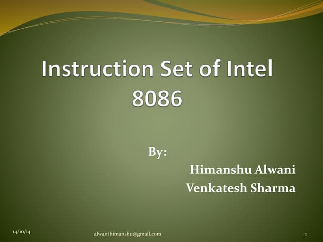 2. 2. Instruction Set of 8086  An instruction is a binary pattern designed inside a microprocessor to perform a specific function.  The entire group of instructions that a microprocessor supports is called Instruction Set.  8086 has more than 20,000 instructions. 21-Nov-2010 ohmshankar.ece@act.edu.in 2