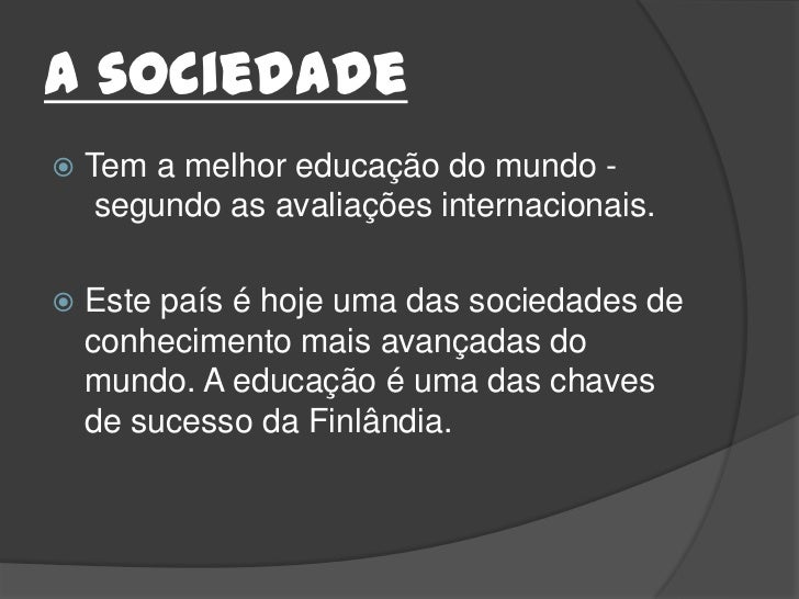3. 3. A sociedade<br />Tem a melhor educação do mundo - segundo as avaliações internacionais. <br />Este país é hoje uma das sociedades de conhecimento mais avançadas do mundo. A educação é uma das chaves de sucesso da Finlândia.<br />