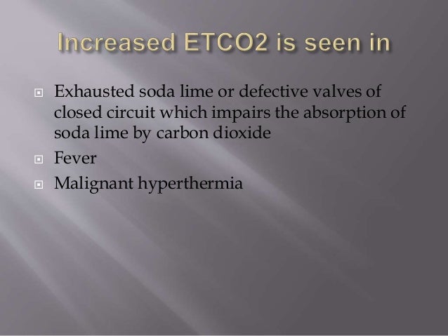 28. 28.  Exhausted soda lime or defective valves of closed circuit which impairs the absorption of soda lime by carbon dioxide  Fever  Malignant hyperthermia