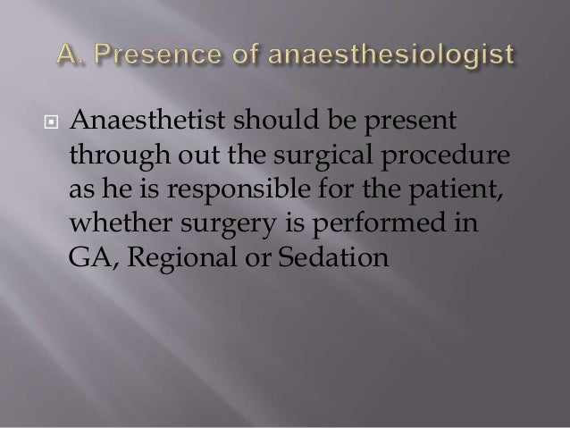 3. 3.  Anaesthetist should be present through out the surgical procedure as he is responsible for the patient, whether surgery is performed in GA, Regional or Sedation