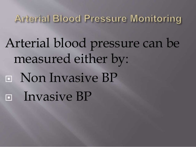 7. 7. Arterial blood pressure can be measured either by:  Non Invasive BP  Invasive BP