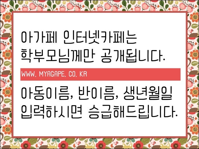 5. 5. 아가페 인터넷카페는 학부모님께만 공개됩니다. WWW. MYAGAPE. CO. KR ! 아동이름, 반이름, 생년월일 입력하시면 승급해드립니다.