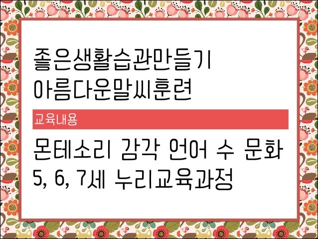 9. 9. 좋은생활습관만들기 아름다운말씨훈련 교육내용 ! 몬테소리 감각 언어 수 문화 5, 6, 7세 누리교육과정
