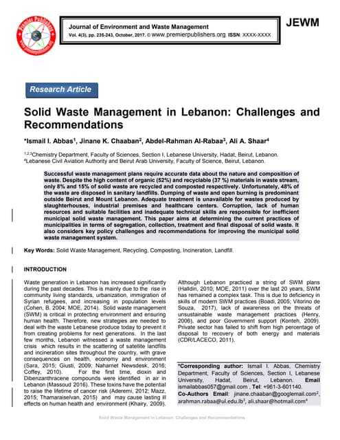weakness in treating and managing the solid wastes in this