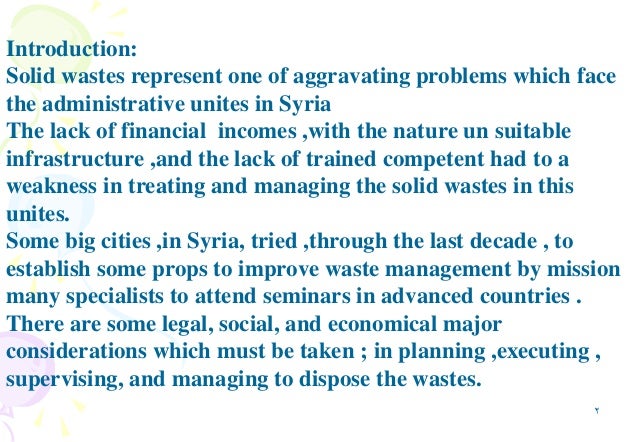 Solid wastes represent one of aggravating problems which face