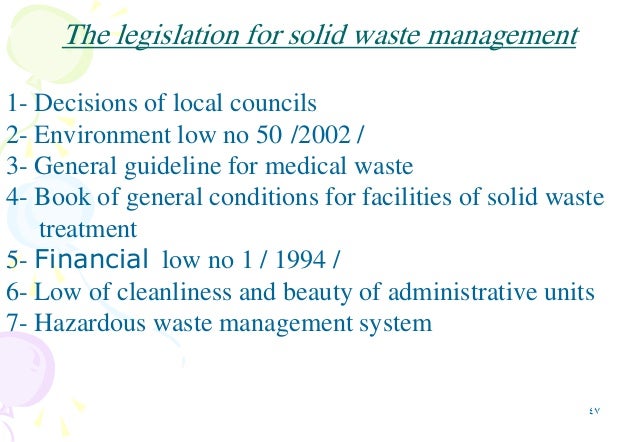 The legislation for solid waste management