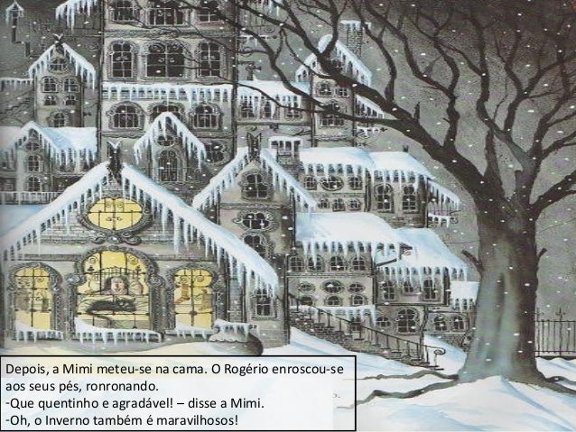 16. 16. Depois, a Mimi meteu-se na cama. O Rogério enroscou-se aos seus pés, ronronando. -Que quentinho e agradável! – disse a Mimi. -Oh, o Inverno também é maravilhosos!