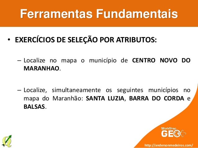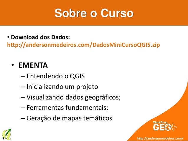 Slides utilizados pelo instrutor Anderson Medeiros, consultor em Geotecnologias, durante o Workshop GEO+, realizado na UFMA entre os dias 25 e 26 de março/2014.