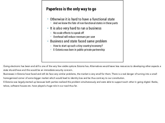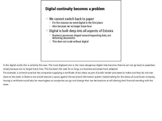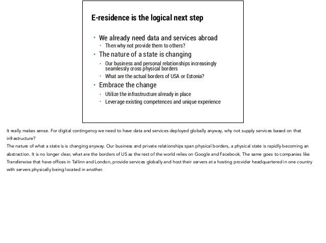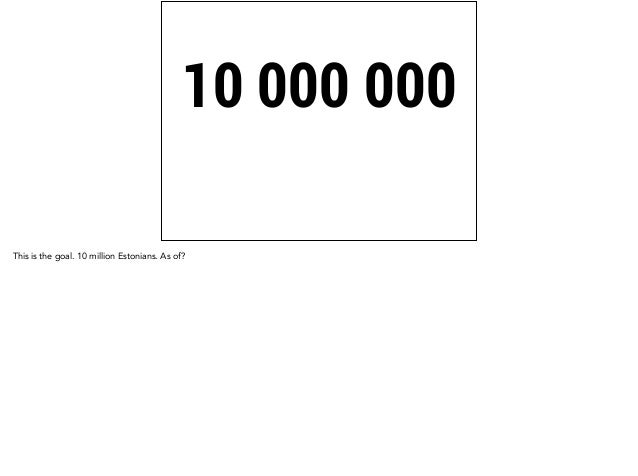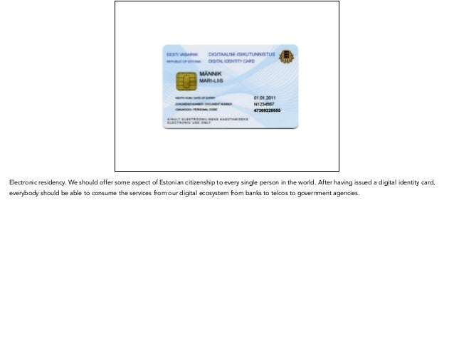 Estonia is planning to become the first truly digitized administration in the world. This deck provides the background to why and how we plan to do this. The vision is to grow our e-government consumer base from one million to 10 million by issuing virtual residencies backed up by a robust and widely adopted public key infrastructure.
