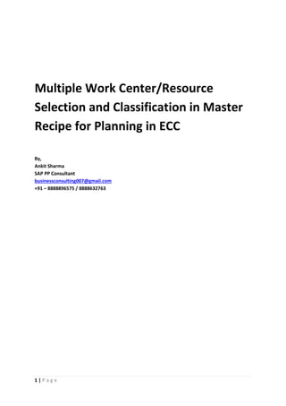 Many industries use multiple similar Work Center / resources to manufacture a product. In industries like Pharmaceutical, FMCG, chemical industry, there are many Material which can be produced on different work center which have the same Capacity. For example, one product can be pack on 9 different packing line. So the main question arises, should I create 9 routing/Master Recipe and 9 production versions? OR Is there any other effective way of dealing with this situation? In this document, we will follow the best approach, i.e. Resource Selection through classification. We will need to create Characteristic, Class, need to update Work Center, Master Recipe in order to achieve this solution.