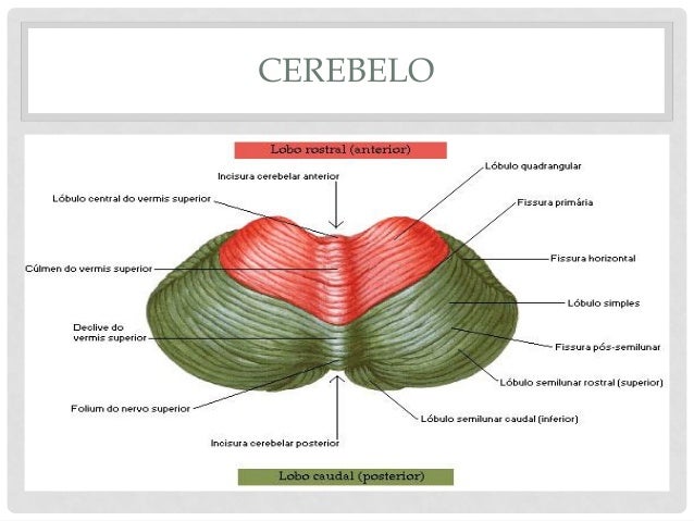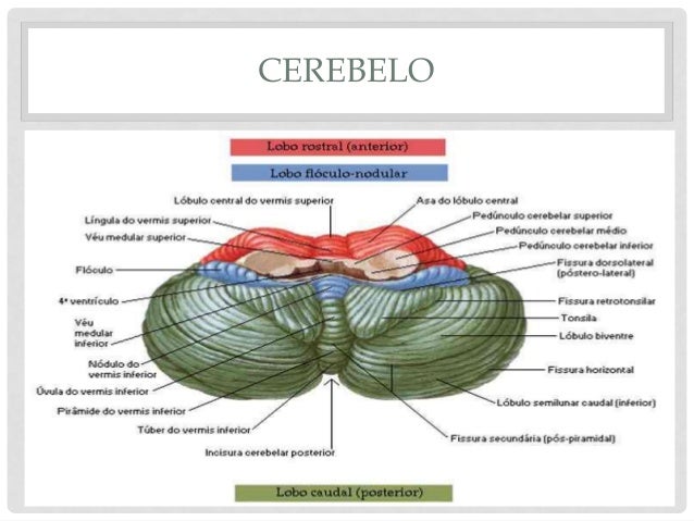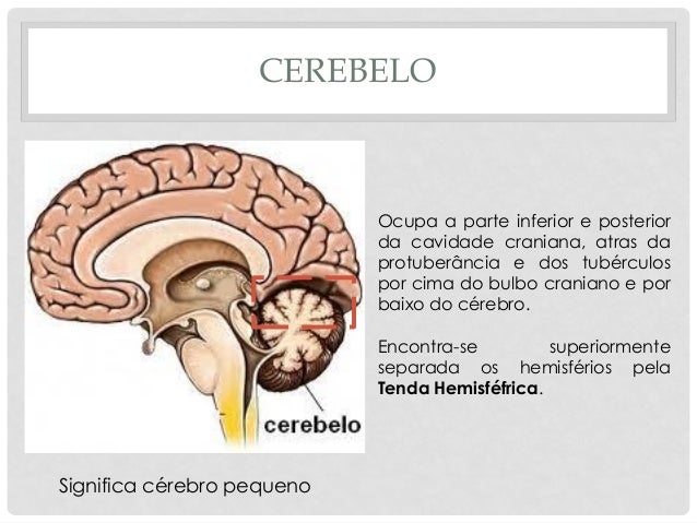 16. 16. CEREBELO Significa cérebro pequeno Ocupa a parte inferior e posterior da cavidade craniana, atras da protuberância e dos tubérculos por cima do bulbo craniano e por baixo do cérebro. Encontra-se superiormente separada os hemisférios pela Tenda Hemisféfrica.