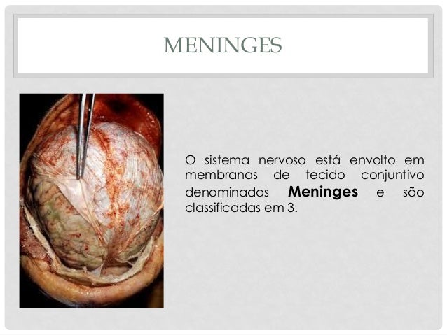 21. 21. MENINGES O sistema nervoso está envolto em membranas de tecido conjuntivo denominadas Meninges e são classificadas em 3.