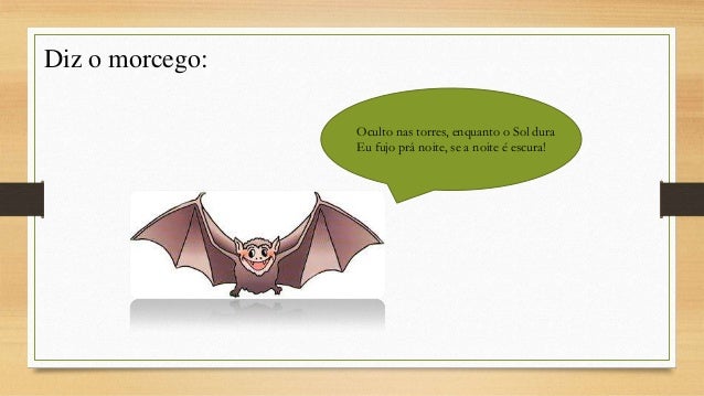 10. 10. Diz o morcego: Oculto nas torres, enquanto o Sol dura Eu fujo prá noite, se a noite é escura!