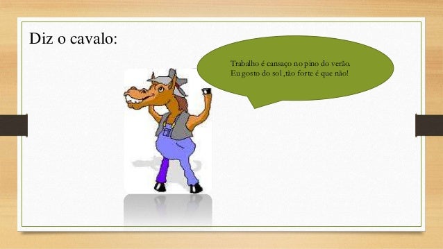 2. 2. Diz o cavalo: Trabalho é cansaço no pino do verão. Eu gosto do sol ,tão forte é que não!